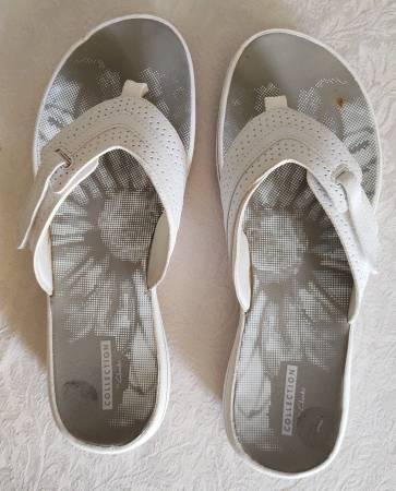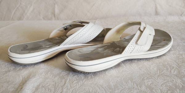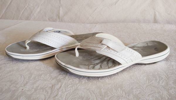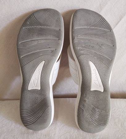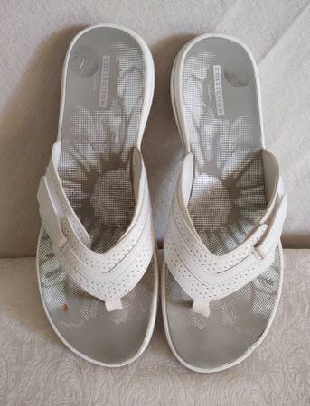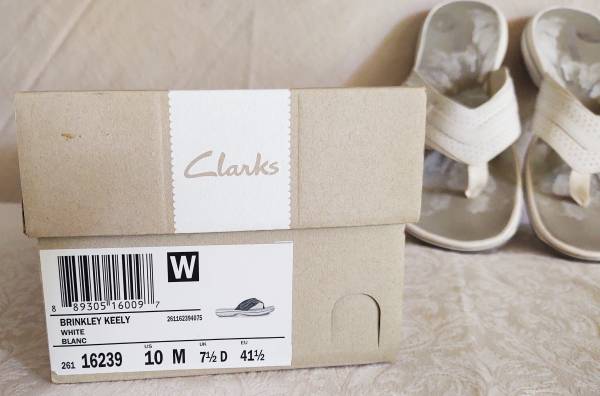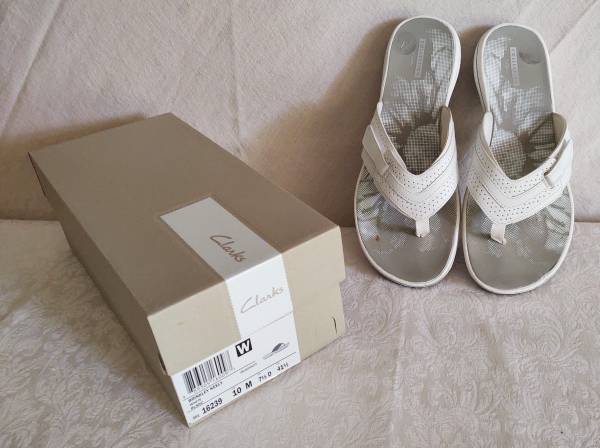 Clark’s Brinkley Keely Women’s White Thong Sandals 10M Orig Box Worn Once COMFY!