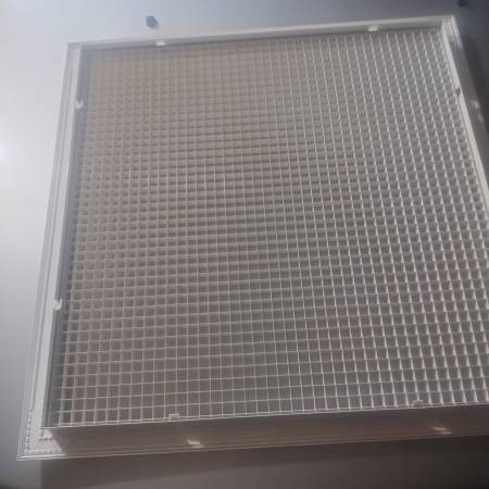I have 2 of these, asking $10 each. Labeled KRUEGER EGC5 22" the little squares are 1/2 inch. Measures 21-3/8 minimum hole size x 23-3/4 outside frame. Aluminum. They are used but in good condition....