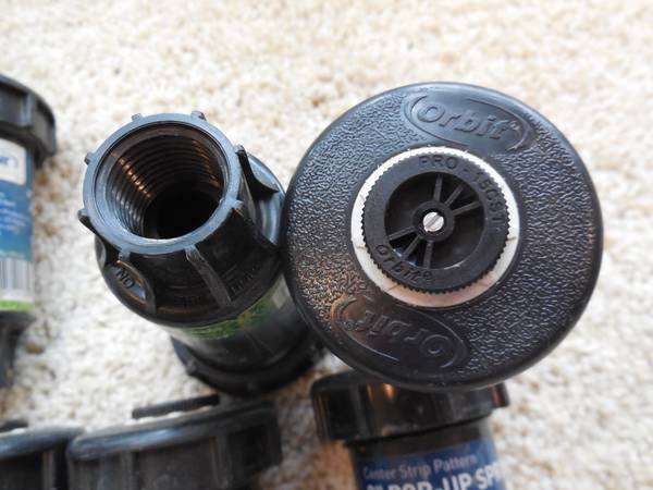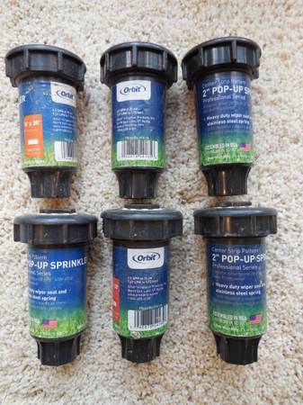 Selling a 6-pack set of brand new Orbit PRO Series 2" pop-up sprinklers with center strip pattern adjustable - up to 5' x 30' rectangular pattern. Heavy-duty wiper seal with stainless steel springs. Simple adjustment on top using straight blade screw driver. Overall length 4", main body 1-1/2" diameter, top 2-1/4" diameter. LOT of 6.