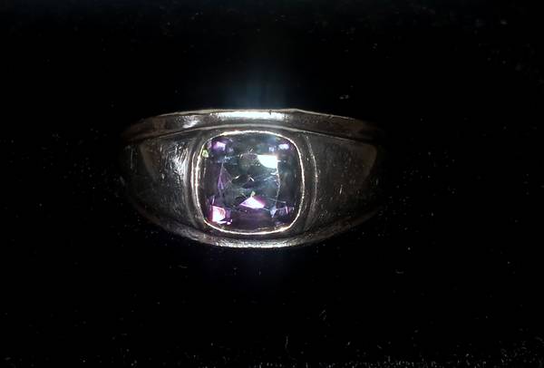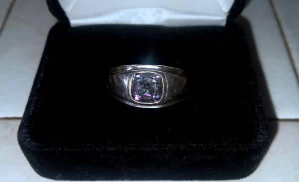 1.5 Ct Mystic Topaz set in Sterling Silver comes with felt box. Mystic Topaz is not an official birthstone, it is considered an alternative birthstone for November, and has a rainbow-like sheen. Solid Ring, and Comes with Black Felt Box.