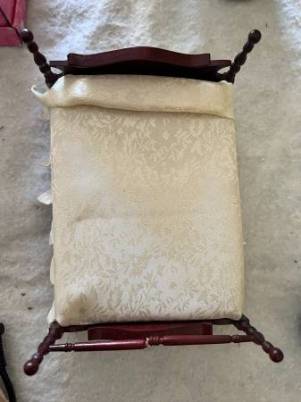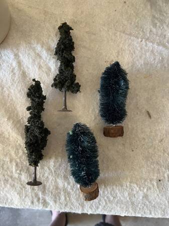 miniature items for doll house 4 poster bed $6 lacy curtain $2 trees - $1 each
