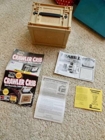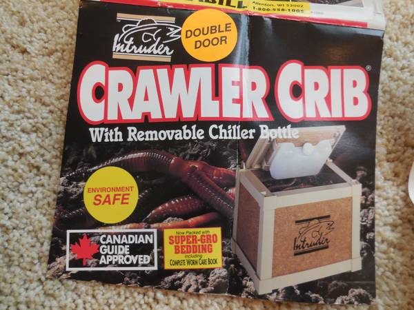 Selling a BRAND NEW Double Door CRAWLER CRIB by FRABILL - with removable plastic Chiller Bottle and bag of bedding. Rare hard-to-find model #1014. Opens from either end to easily access bait.