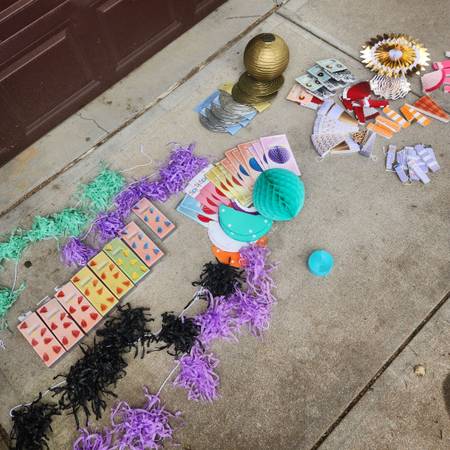 Full bin of party decorations from Target. Includes all colors to theme your party around the season, holiday, or favorite colors. Includes storage bin. Great for large families, daycares, community centers, long-term care homes, or school teachers. Pickup near 132nd & Harrison.