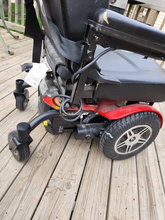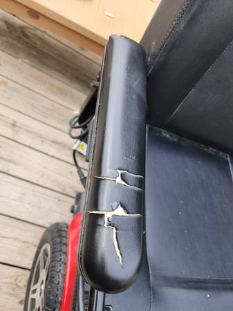 Used Jazzy Power Wheelchair for sale. Paid $3900.00 new and used for 13 months. Runs great! Has some tears in vinyl on controller arm and side of seat. Weight limit 450 lbs.