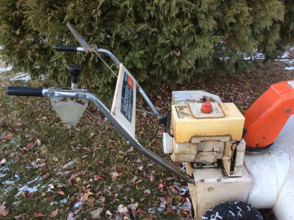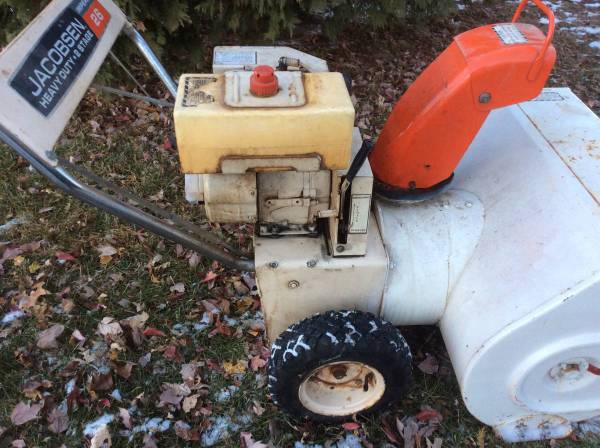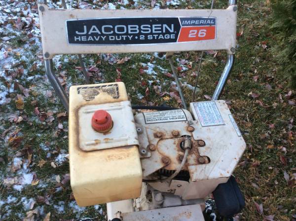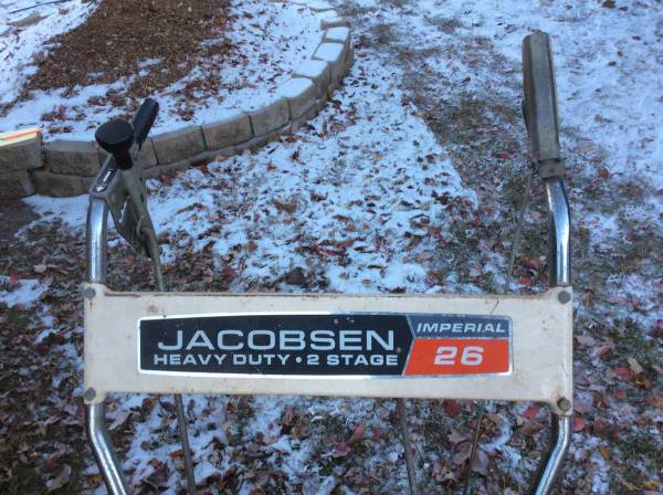 Jacobsen 2 stage snow blower heavy duty Imperial 26 - this has lever used to engage the 2 stage blowers and to drive the snow blower forward and in reverse has 5 setting for both directions. This blower is for the bigger snows we have and for the light ones also,,,,will cut thru big snow drifts and deep snow. Has Tecumseh engine.