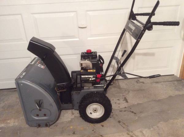 Yard Machine 2 stage snow blower-5HP engine-22 inch wide cut / 22 inch tall cut when plowing snow. Has 5 forward speeds with 2 reverse speeds. All Terrain tires for great grip. Snow chute has hand crank for easy access with handles to drive the blower in gear and other to engage snow throwing. For bigger jobs.