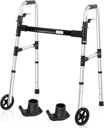 Lightweight Compact Folding Standard Walking Frame with 2 Skis and 2 balls. Adjustable Height,Supporting Up to 350lbs. FSA/HSA Eligible. New in box (needs assembled) Black $40 cash is the price....