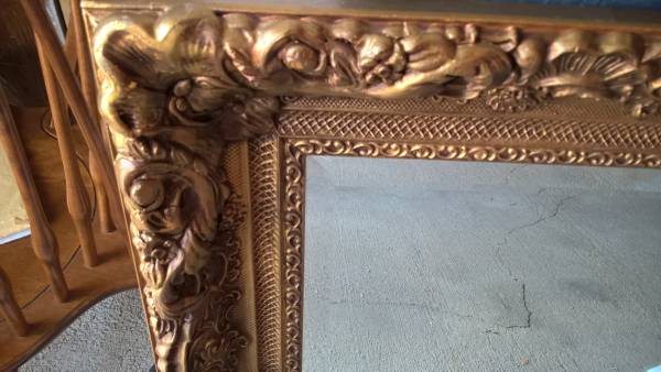 Photos taken at angles to avoid reflections. This mirror is very straight, solid, and heavy in its construction.