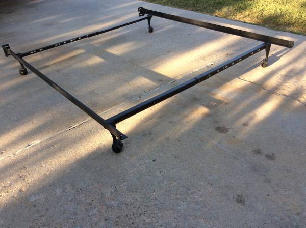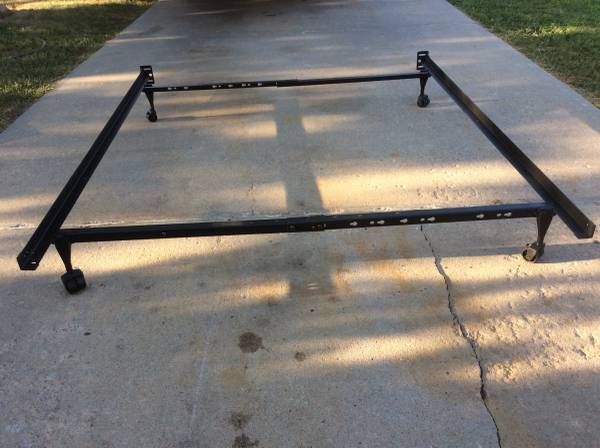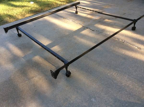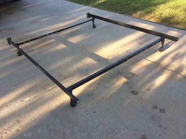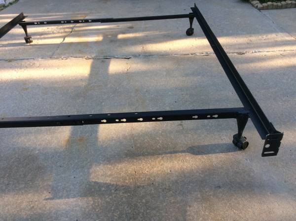 New adjustable bed frame fits queen full or twin beds. Head board attachments and wide locking castors on corners. Folds for easy hauling and setup.. FIRM ON PRICE [107]