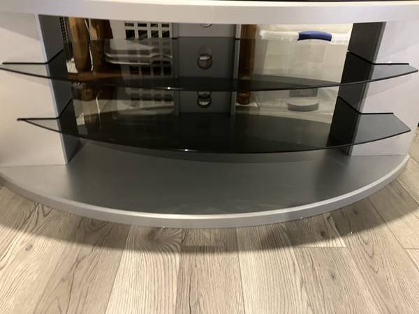TV Stand w 3 Smoke Glass (2 Insert Shelves and one Sits on Top)-Some scratches on the top but glass sits on top otherwise in excellent shape - Heavy and need 2 individuals to lift. NO chips on glass. Length 50 1/2" and the Height 20". Asking $100.00.