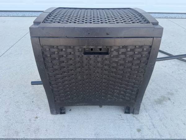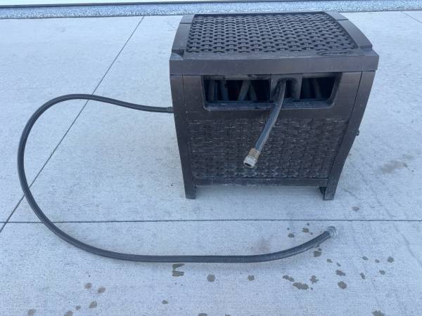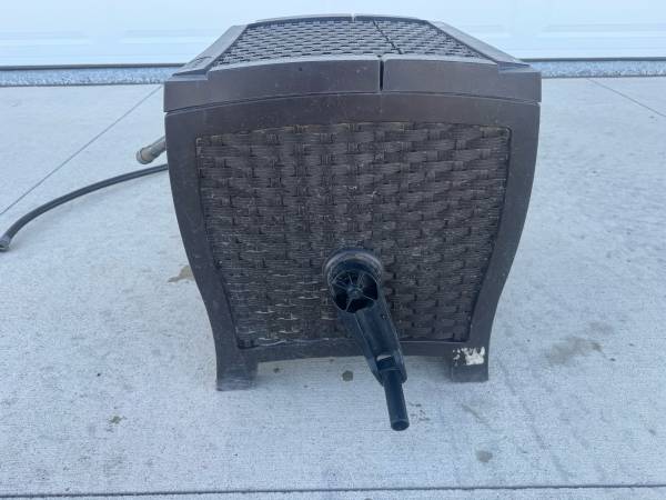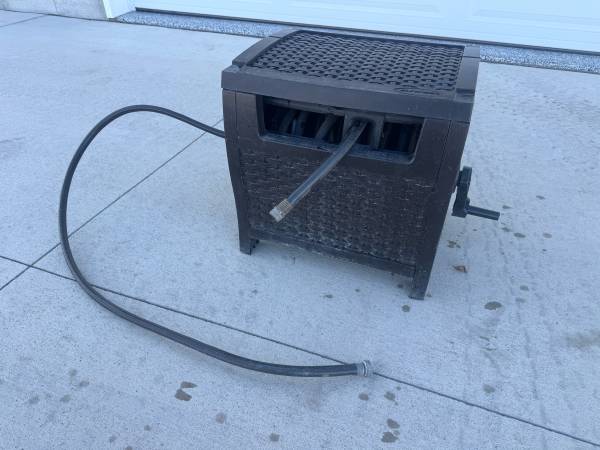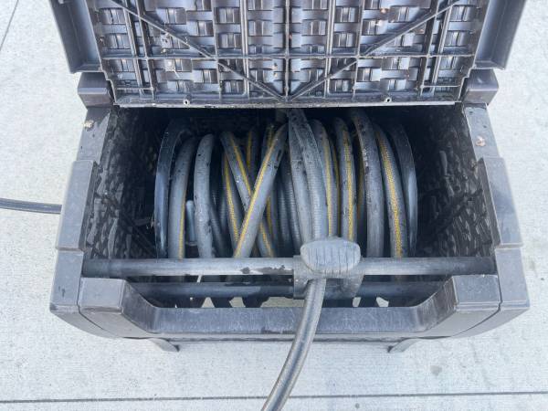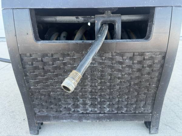 Hose Reel in plastic ‘wicker’ box. Includes short supply hose & 50’ garden hose.