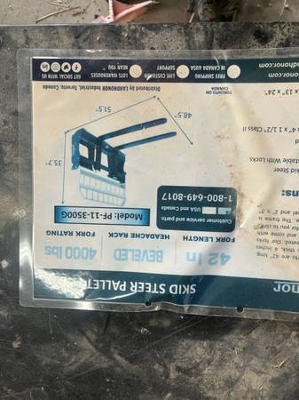Land honor, new 42 inch skid steer pallet forks rated at 4000 pounds Call 402 four four three 6733