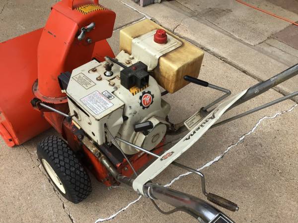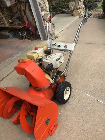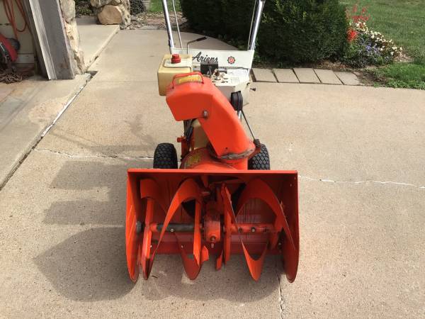 Ariens electric start 7 hp two stage snowblower, 4 speed forward and reverse works well. Starts easy with rope or with 110 electric. In good condition for an oldie! All there and all works! Make an offer. Good for big driveway or long sidewalks, apartment building, etc.