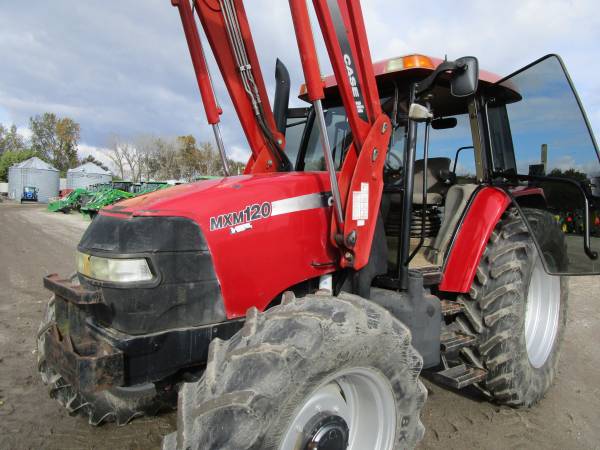 2003 CaseIH MXM120 tractor, 4wd, only 4597 actual hours, 122 horsepower 6 cyl. turbo diesel, 18 speed full powershift w/ LH power shuttle, 3 point hitch, 2 rear hydraulic remotes, 540 & 1000 pto, cab, air, heat, stereo, air seat, diff lock, grill guard, radial tires, rear 18.4R38 @90%, front 14.9R28 @85%. Comes with a CaseIH LX162 self-leveling loader with joystick, mid valve and 7' HD global quick attach bucket. One owner trade from Kentucky. Pre-Emissions. No DEF. No Re-Gen. Very good tractor, runs and works great. $47,500. Trades welcome. Financing and delivery available. Lots of tractors and equipment at bnttractor.com