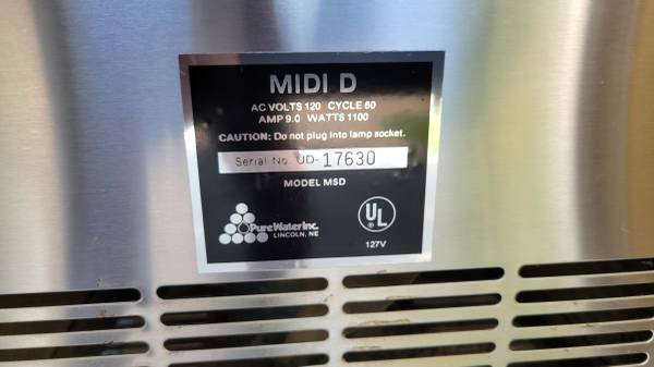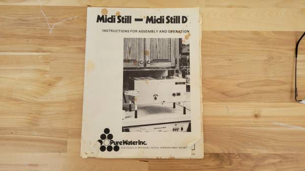 This water distiller is made by Pure Water Inc. in Lincoln. It is the model MSD. It's in excellent condition and works perfectly. Comes with the operators manual, hoses and some cleaner/descaler.