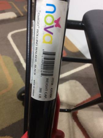 Nova getgo rolling walker 4203BK model. Has handle brakes and Handles are adjustable for different height people. Black color. Seat lifts up to fold for freeing up space.