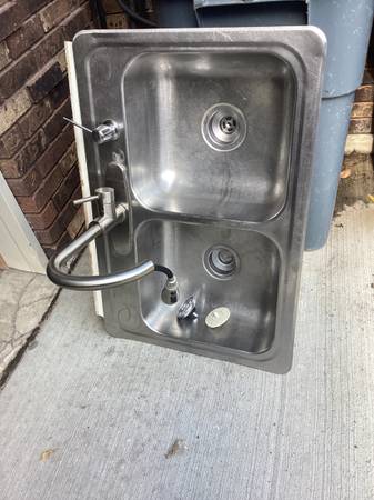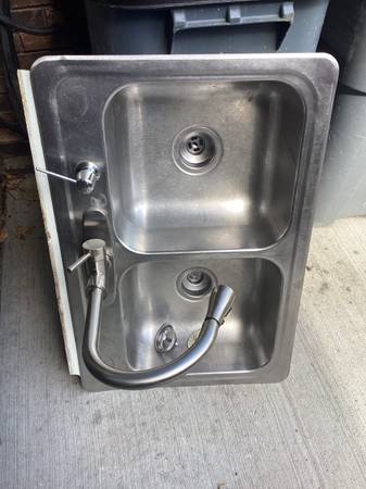 Stainless steel sink used but no damage with like new condition six month old faucet and soap dispenser