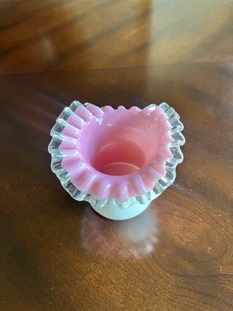 Estate: 1940's Fenton Peach Crest Ha Vase 4" Wide 3 3/4" Tall