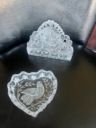 Rare Vintage Hofbauer Byrdes Lead Crystal Napkin Holder Bird Design...