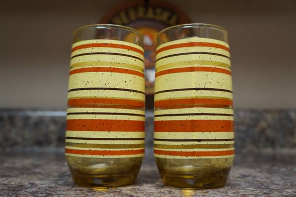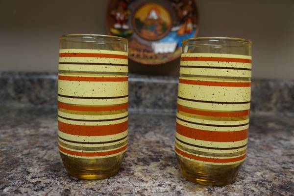 Cool set of 2 vintage striped yellow juice glasses in great shape! Just $5 for both! Cash only please! Pick up at the Casey's at 96th and Giles.