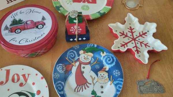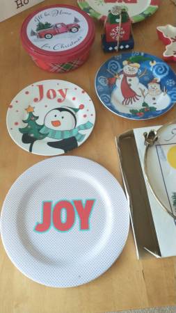 4 Plates (3 Ceramic [Penguin, Snowman and Snowflakes], 1 Plastic [JOY])