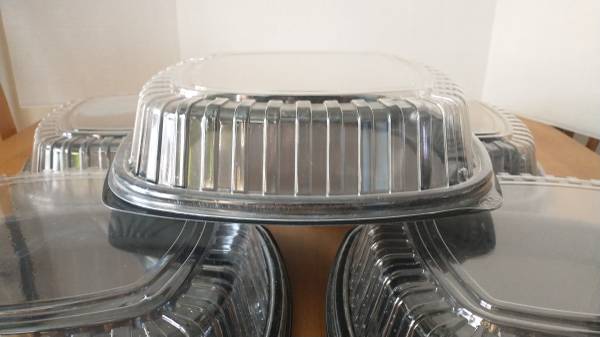 5 14 Inch Square Plastic Food Trays with Lids Covers EUC - $5