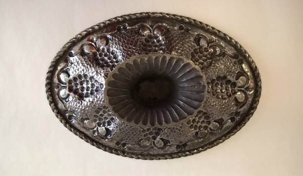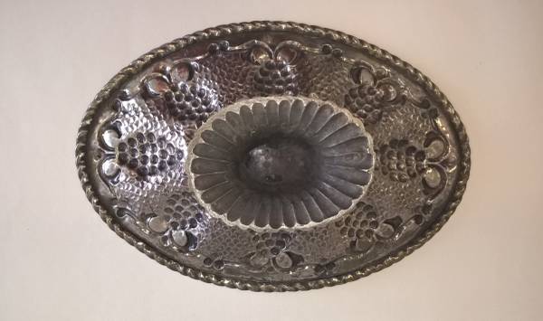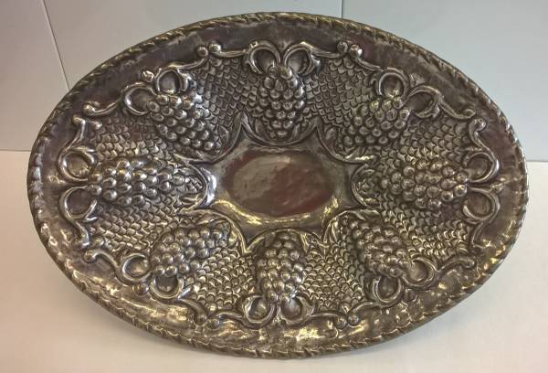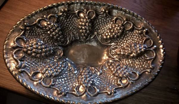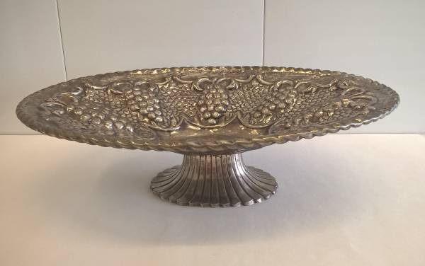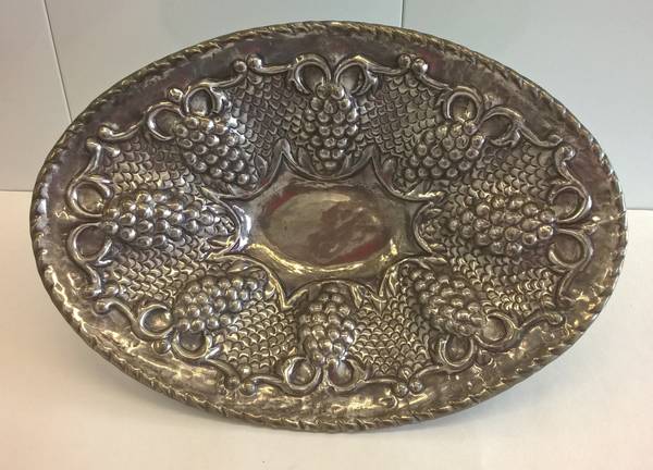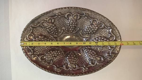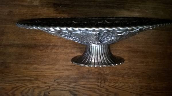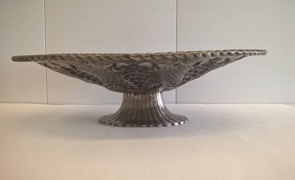 Table decor, vintage or antique silver tone fruit bowl Weighs 2 lb 14 oz 16.25 x 11.25 x 4.75 inches