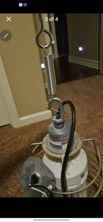 Spring an'd threaded eyelet to hook it to your pre - fab beams, ready to be wired into your newly dry-walled ceiling or man-cave / garage lounge