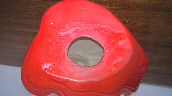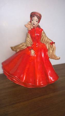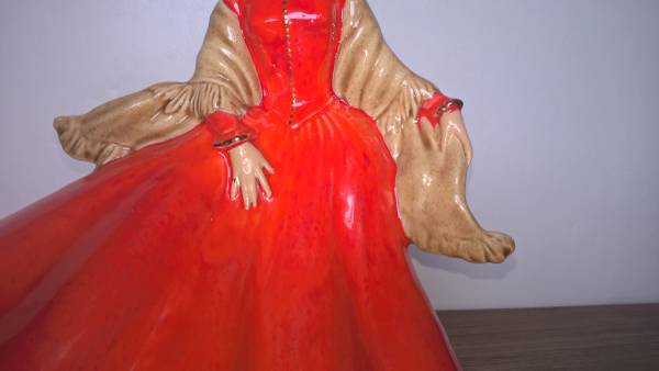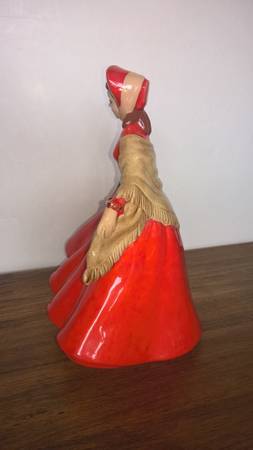 Lady Figurine 9" Ceramic Orange Dress Tan Shawl Gold Trim Signed -...