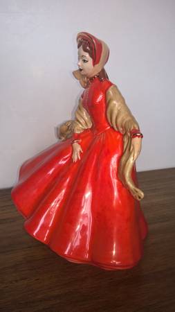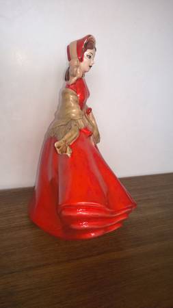 Vintage Lady Figurine 9" Ceramic Orange Dress Tan Shawl Gold Trim Signed L Elliott 1974 Very pretty, clean condition No chips, cracks, scratches, breaks or repairs Measures about 9" high Weighs...