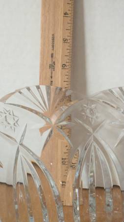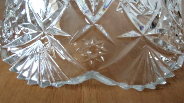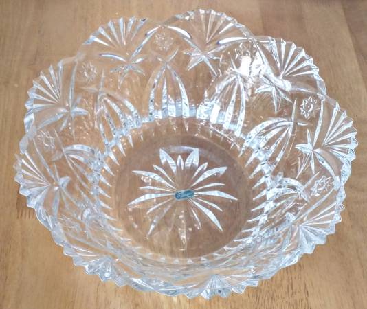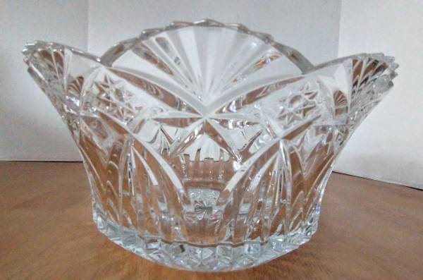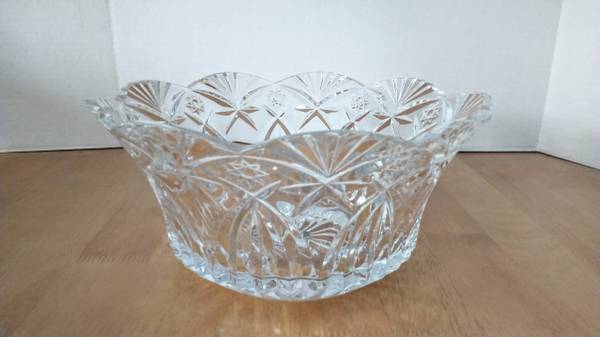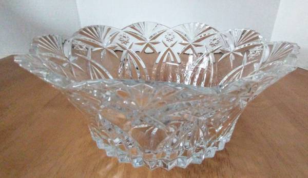 This bowl is huge and heavy! 12 inches across, about 5.5 inches tall, and 8.2 pounds of beautiful, immaculate crystal. This would make a stunning statement piece for any home.