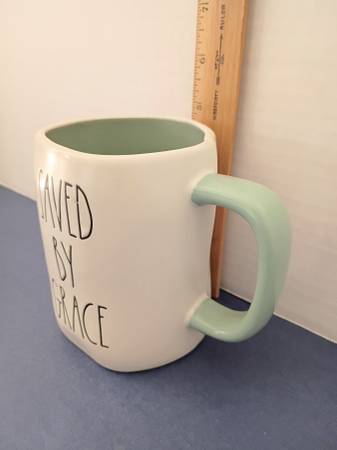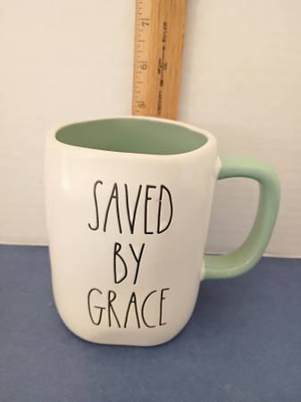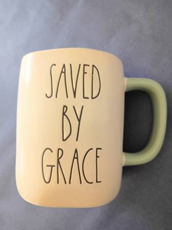 Like New Rae Dunn Saved By Grace White & Sage Green Ceramic Mug Cup Wabi-Sabi Design EUC - $10 Shipping Available Via eBay https://www.ebay.com/itm/297744102719 Buyers in the Omaha area do not...