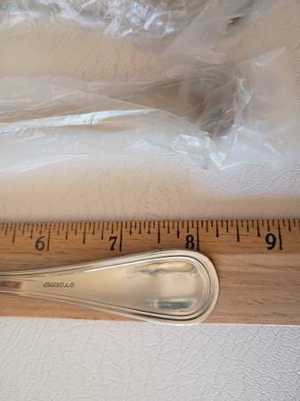 4 Oneida 90-15 Large Spoons - $20 Never been used and all but one is still in its cellophane wrapper. The pattern appears to be Hollis or Bellini. Just over 8 inches long. They are definitely...
