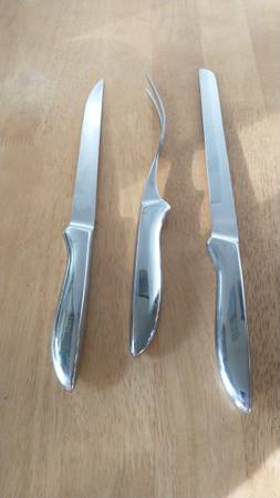 3 Piece Carving Knife & Fork Set Stainless Steel Integrated Blade & Handle in Excellent Used Condition (EUC) - $10
