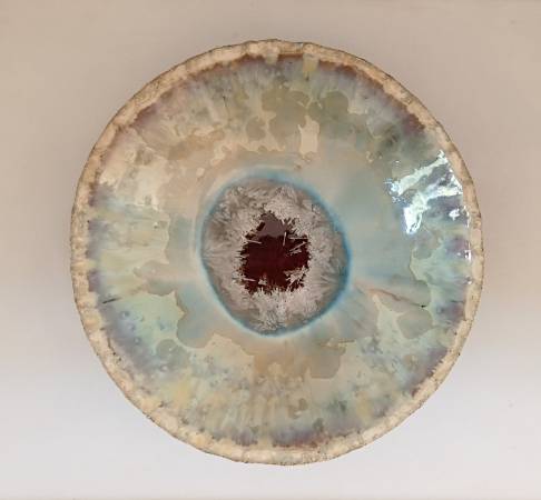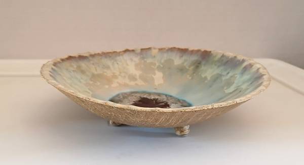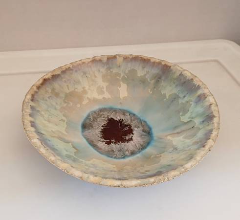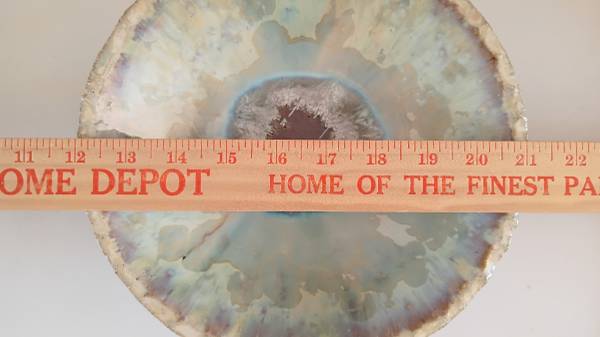 First come, first served. Cross posted. No holds. Like New 9-Inch Three-Legged Round Glazed Crystalline Bowl with Simulated Geode Bottom & Rustic Rough-Hewn Edge - $100 9 inches across and 2.5...