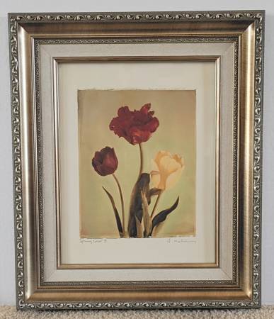 First come, first served. Cross posted. No holds. No taxes! No tariffs! No hidden costs! Spring Color IV, by S. Melia, Framed Print - $35 A beautifully framed print of tulips. 17x20 inches overall....