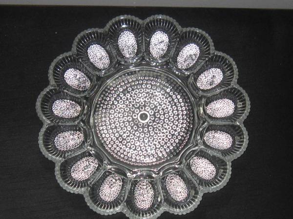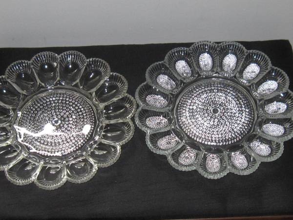 Deviled Egg Plates two $10.00 each Indiana Glass Hobnail beautiful clear glass vintage, perfect condition!