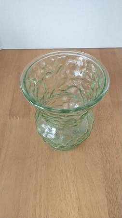 Vintage EO Brody 8 Inch Light Green Crinkle Glass Vase + Unbranded Dark Green Glass Ribbed Vase with Ruffled Edge Top both in Excellent Used Condition (EUC) - $5