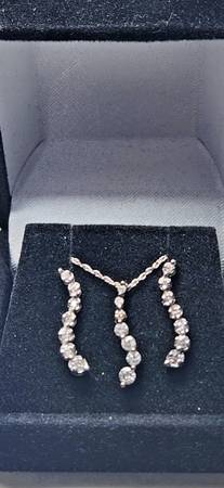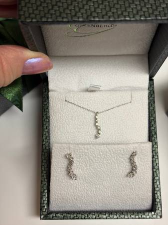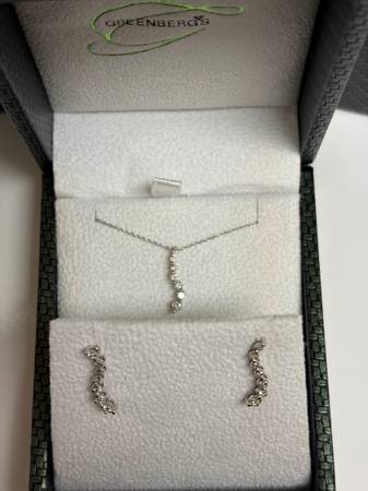 18K white gold diamond Journey earrings and 14K white gold Journey diamond pendant necklace. All are stamped.