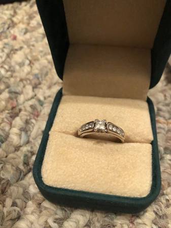 Just paid to have them refurbished to new condition. Solitaire princess and diamond wrap enhancer band.
