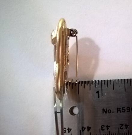 Just wanted to mention that it is a little heavy for its size weighing .7 oz or 20 grams so may wear best with heavier fabrics. Has a nice space between the pin itself and the back to accommodate thicker material.