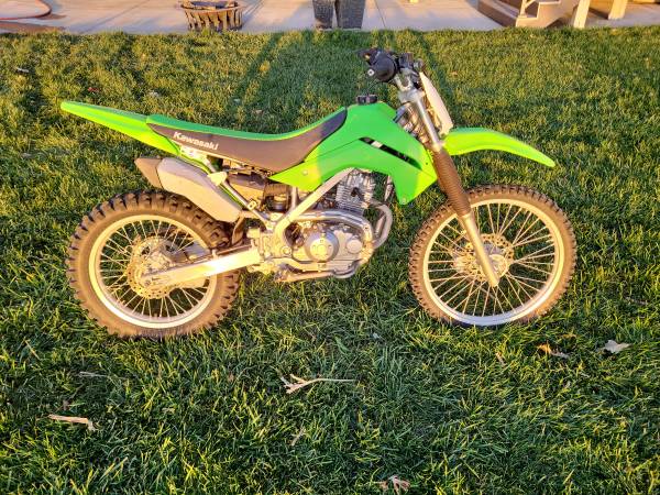 2020 klx 140 with 158 hours runs great clean it has no problems it is just missing one of the side plastic pieces good tires and grips electric start works old batter went out so it has a brand new one. 5 speed good clutch new er chain front and rear brakes work shocks are good don't leak stater is good keeps the battery charged. no oil leaks. text me at 402 312 2396 with eney questions.