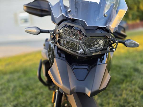 Accessories include - headlight guard, windscreen,rear pannier racks, front crash bars, highway pegs, kickstand pad.