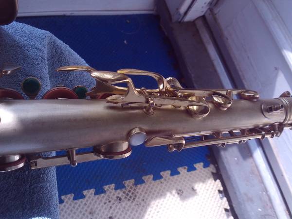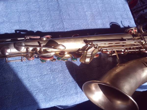 HERES A (LOWER PRICES TODAY ) DROP 100 $ CONN NAKED LADY TENOR 10 M SAXOPHONE 1949 334XXX JUST RETURNED FROM THE SAX SHOP FOR A TOTAL REFURBISH . IT IS A BEAUTY , WITH ITS ANTIQUE BRUSHED MATTE SATIN FINISH . WITH GOLD LACQ. KEYWORK , ALL NEW PADS RESO 'S CORKS FELTS . THIS SAX WAS LITE,LEAKED TO THE MAX AND PLAYS TOP TO BOTTOM WITH EASE ALL LOW NOTES COME OUT EASY , IT HAS A BIG FULL SOUND THE PADS ARE WATER PROOF SELMER STYLE WITH LARGER RESONATORS , THE NECK ( SEE PHOTO) ITS A NEW C 10 NECK . SILVER PLATED , !!! FITS PERFECT INTONATION GOOD . ALL KEYWORK FITS PERFECT NO DINGS OR DENTS BODY TUBE STRAIGHT AND NICE TOTAL ACTION , FAST RESPONSE , EMAIL FOR QUESTIONS I HAVE OTHER SAXES AS WELL ALT'O'S AND TENORS MORE 10 MS ALSO 3 TOTAL , SEVERAL BIG B 'S BOTH ALTO AND TENOR 6 KING ZEPHYR ALTO 44 THANKS FOR LOOKING