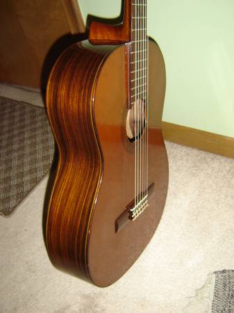 This is the upper end classical for "Crown and Crown Professional guitars that were made in Japan and distributed in the USA by Crown City Imports of Pasadena. In the period from 1963 to 1973 Crown City Imports offered a range acoustic, electric and bass guitars as well as amplifiers and drums made by various Japanese factories."