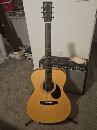 Eastman E10 OM. Purchased in 2019. Solid mahogany back and sides. Adirondack Spruce top. Very clear tones especially in midrange. Great all around guitar. Works well with fingerstyle. I can not find any scratches, nicks, or dents. Includes OHSC. Selling gbecause I moved to an apartment and am reducing the number of guitars. No trades please. Local pick up. This is located in west Omaha. Thanks for looking!