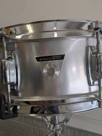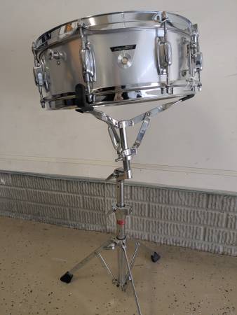 The Ludwig Standard Aluminum Snare is a versatile and sought-after drum. It is considered a sibling to the Ludwig Acrolite snare as it also is made from aluminum and uses the same throw-off, butt plate and triple flanged hoops. The matte aluminum finish enhances the drum’s tonal quality, making ita great choice for live performances and studio recordings. It is considered, like the Ludwig Acrolite and Ludwig Supraphonic to be a collectible. If you need a comparable, one site to check is Reverb. Snare size is 14” x 5”. INCLUDES the Ludwig snare drum stand. Located way west Omaha. Cash only.