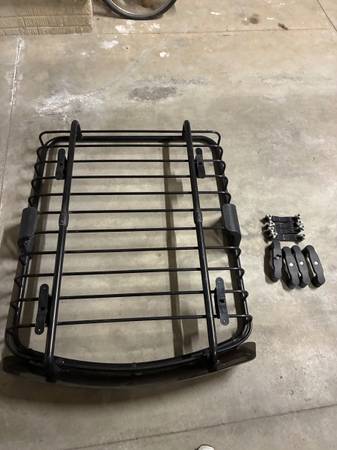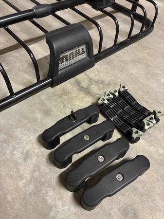 Thule M.O.A.B. 690xt with 691xt 20” Extension. MOAB basket is used with a few small rust spots. Extension is in box and unused. Cash only. 39"W x 6-1/2"H x 44" L w/ 20” extension