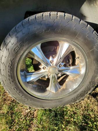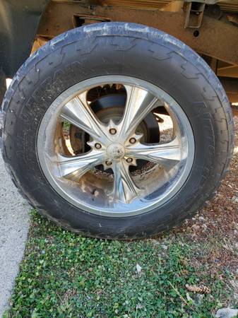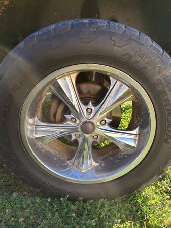 Sale or trade looking for another set up 18inch with possibly 275-65-18 Mt or rt tires but will look at others. Mine are 305-55-20 tires don't have much tread fronts have more the backs hold air no issues rims chrome is peeling mainly on back of rims. Still running them on my truck. Do have few things I can throw in on a trade or will sale outright make reasonable offer cash no shipping. Call or text if seriously interested thanks for looking.