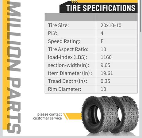 Set of 2 20x10-10 ATV Tires; Rim Width: 8 Inch; Tread Depth:0.35 Inch
